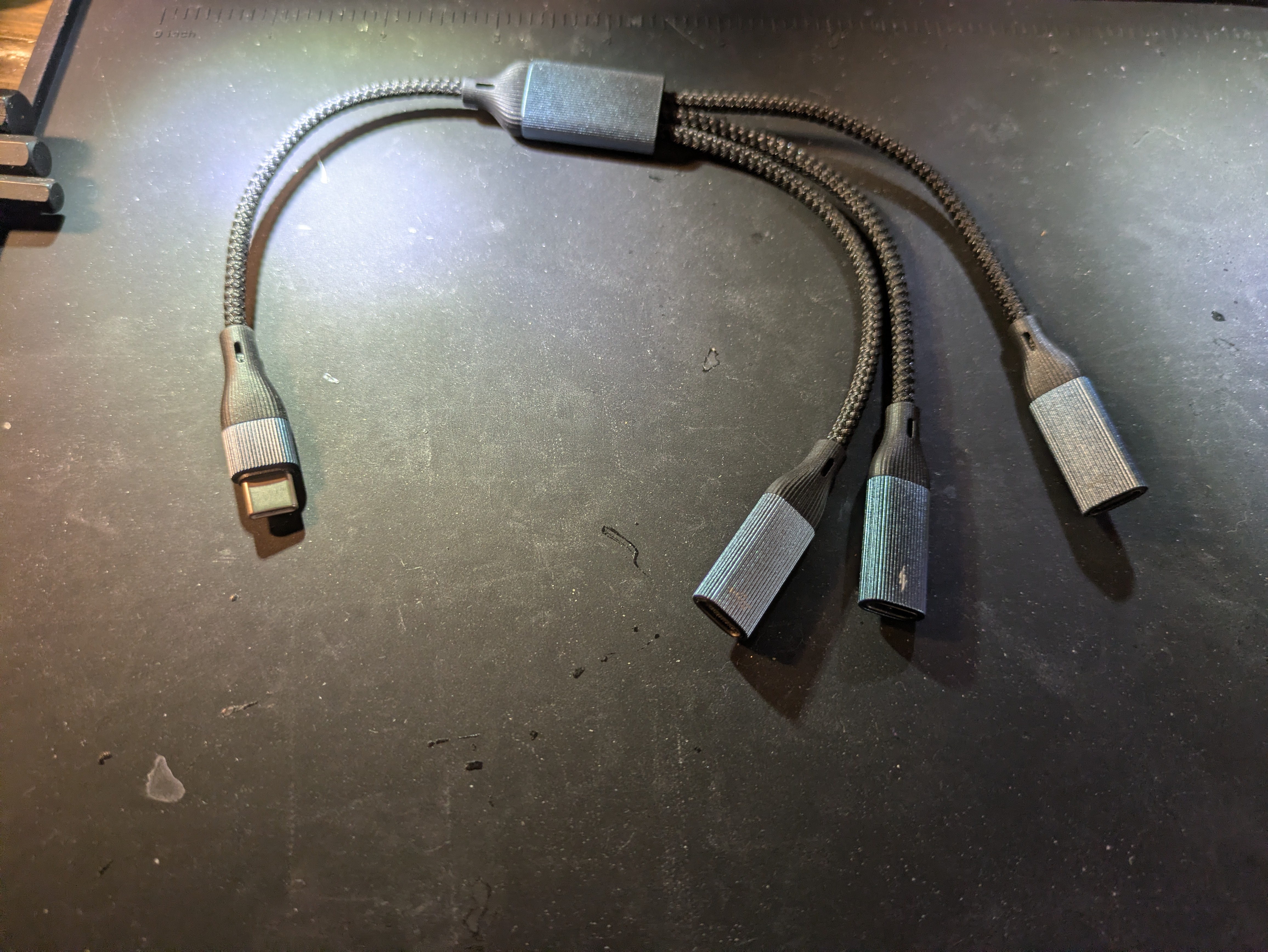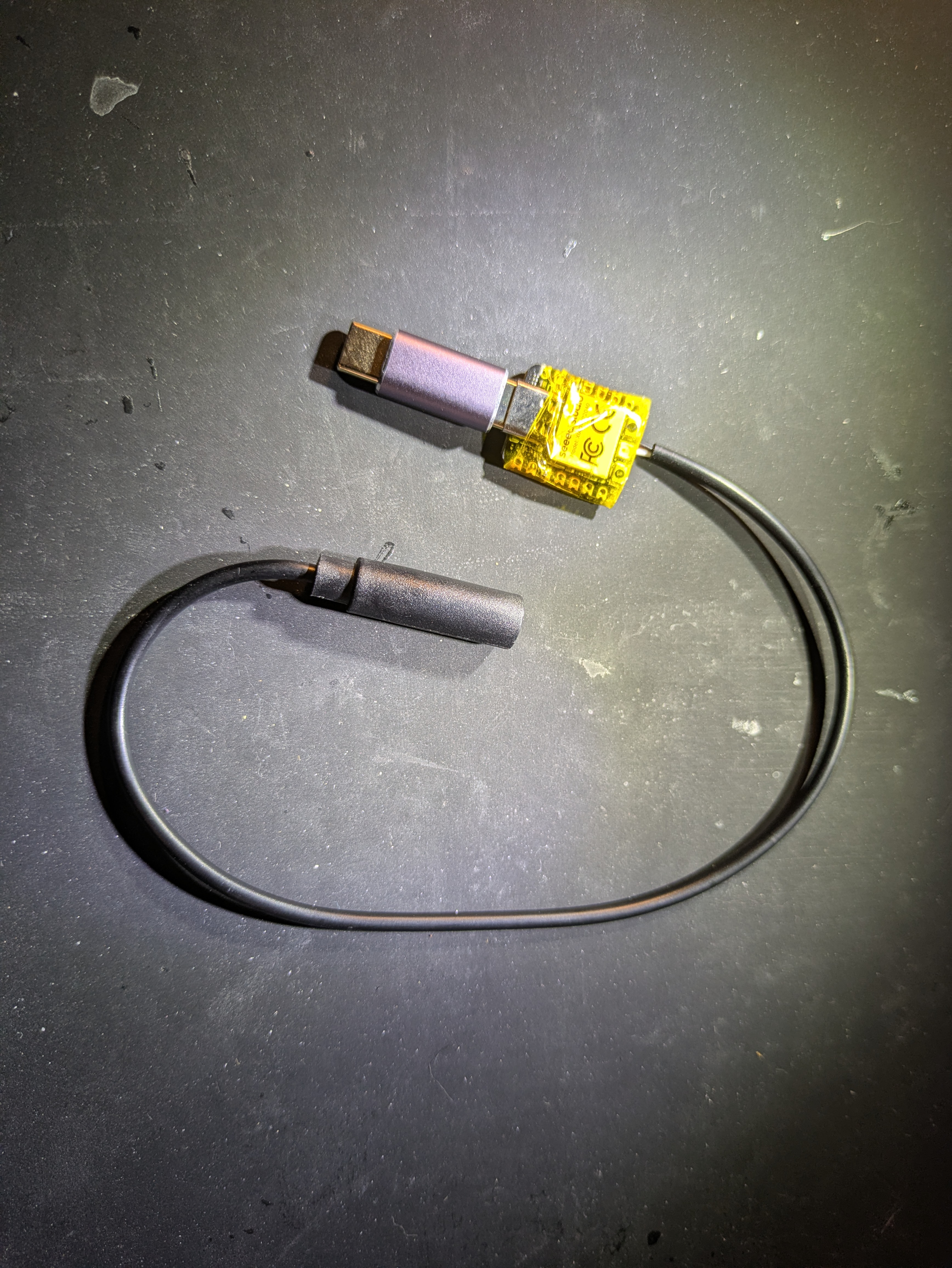 I tried one that had a 3.5mm jack, a USB-C PD power port, and an additional USB-C port, but the USB-C port didn’t work as an OTG port. So I had to go with a 3-in-1 USB-C adapter (Amazon). This worked much better.
